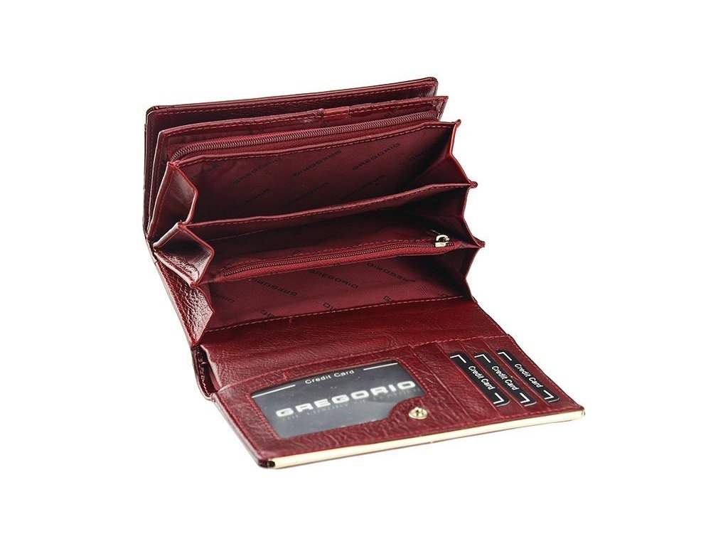 Krásná dámská peněženka Gregorio je vyrobená z kvalitní lakované pravé kůže. Peněženka je středních, až menších rozměrů a je zab alena v dárkové krabičce výrobce . Peněženka poskytuje maximální úložné prostory a sloty pro Vaše kreditní karty, mince, bankovky, fotky a průkazy. 13x slot na kreditní karty, 1x foto nebo občanský průkaz, 1x mincovník na zip, 3x přihrádka na bankovky a další úložné prostory...