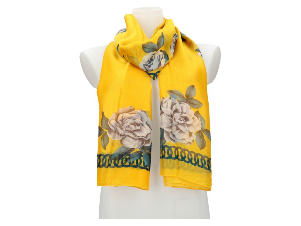 Dámský letní šátek / šála 179x100 cm žlutý s květy