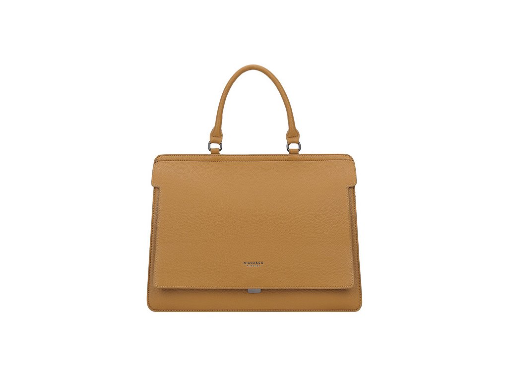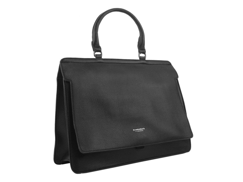 Pokud sháníte středně velkou až větší dámskou crossbody tašku , kterou můžete nosit i v ruce a ještě k tomu by měla vypadat jako aktovka, potom se Vám bude hodit tato jednoduchá " pošťácká taška " z italské produkce DIANA & CO . Kabelka má jedno ucho do ruky a přídavný crossbody pásek, který má pevnou délku 125 cm. Připíná se na zadní stranu tašky na kovová očka. Vyrobená je z pevné ekologické kůže. Klopa je jištěná mechanickou sponou. Vnitřní prostor je dále uzavřený pomocí zipu, je vybavený podšívkou se třemi bočními kapsami, z nichž největší je na zip. Ačkoli je taška vzhledově zaměnitelná za aktovku, tak ji určitě pro formáty A4 nedoporučujeme. Tyto formáty se do ní obtížně ukládají a navíc zřejmě nepůjde zapnout zipem. Na zadní vnější straně je k dispozici další praktická kapsa na zip. Kovové aplikace má kabelka v lesklé černé barvě . Úvodní fotografie vždy odpovídá barvě produktu ! Ostatní fotografie již mohou odpovídat produktu v jiném barevném odstínu.