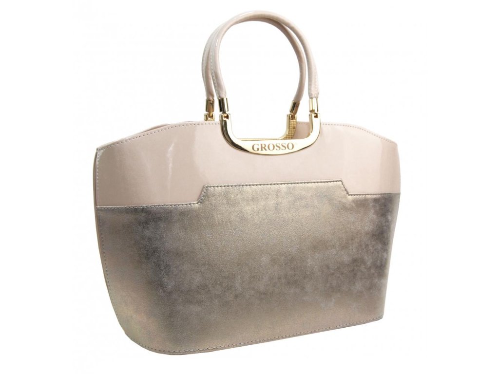Elegantní béžová lakovaná kabelka do ruky S5 GROSSO