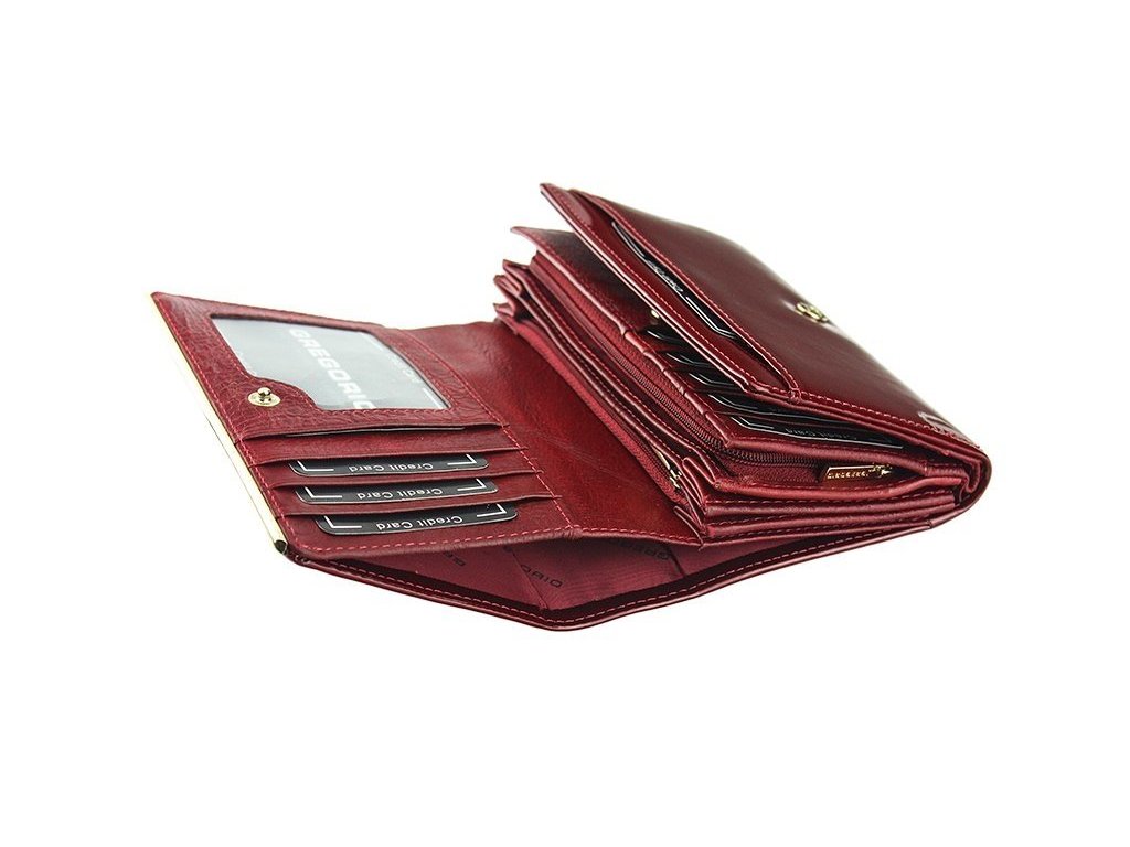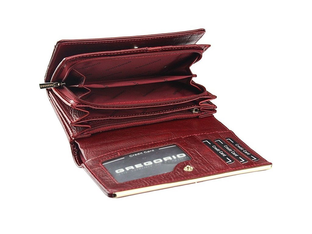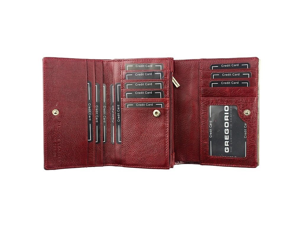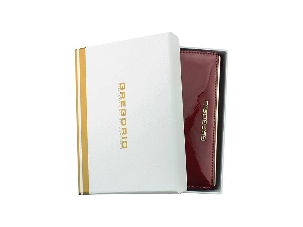Krásná dámská peněženka Gregorio je vyrobená z kvalitní lakované pravé kůže. Peněženka je středních, až menších rozměrů a je zab alena v dárkové krabičce výrobce . Peněženka poskytuje maximální úložné prostory a sloty pro Vaše kreditní karty, mince, bankovky, fotky a průkazy. 13x slot na kreditní karty, 1x foto nebo občanský průkaz, 1x mincovník na zip, 3x přihrádka na bankovky a další úložné prostory...