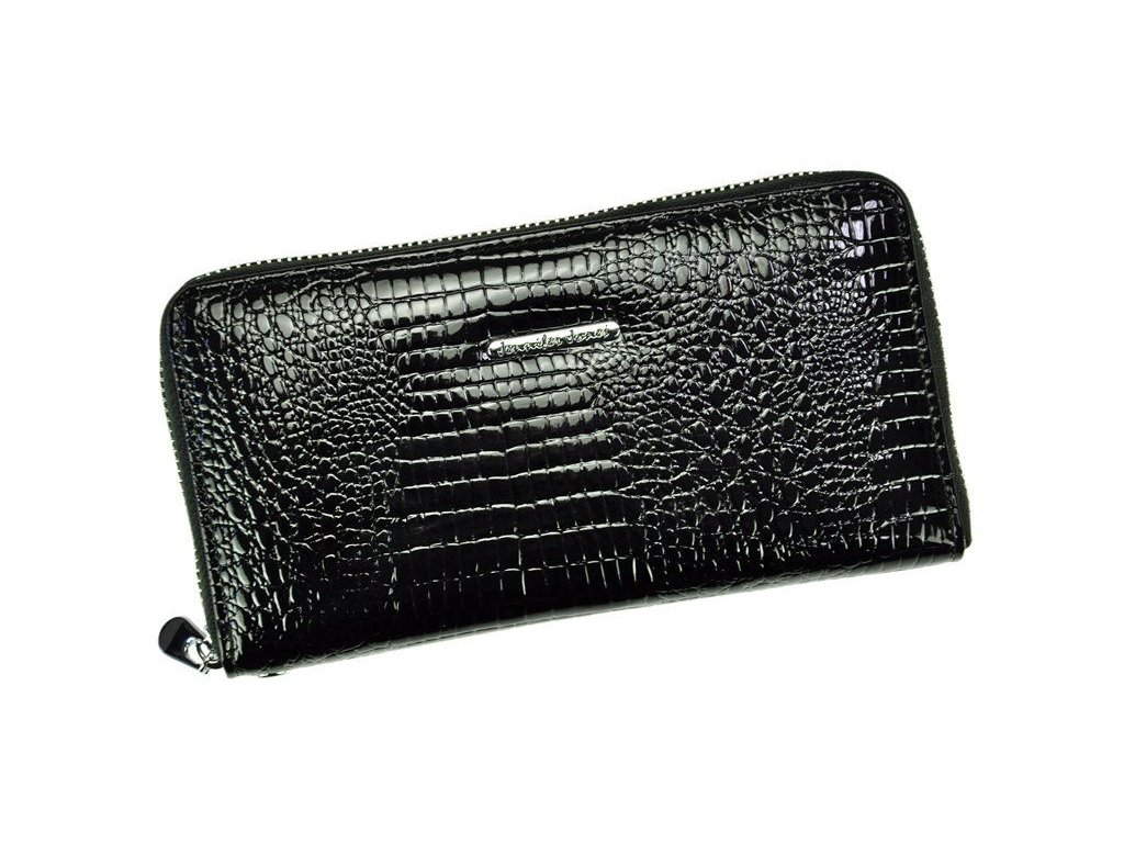 Kvalitní lesklá kožená peněženka Jennifer Jones o rozměrech 19,5 x 10 cm v černé barvě