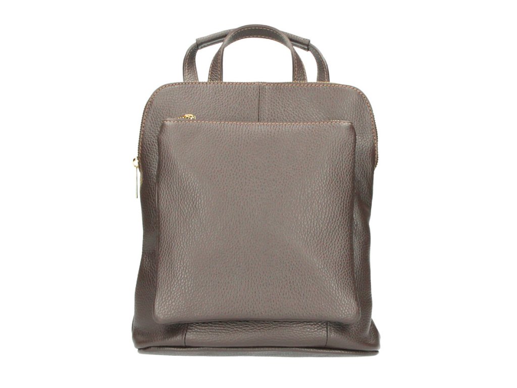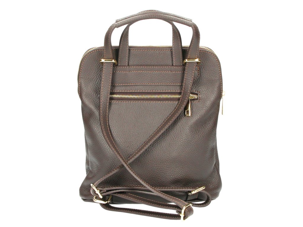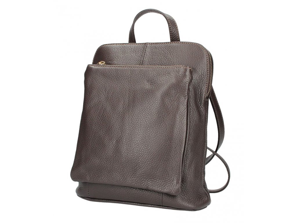 Kožený menší dámský batůžek s čelní kapsou a zlatými doplňky; tmavě hnědý