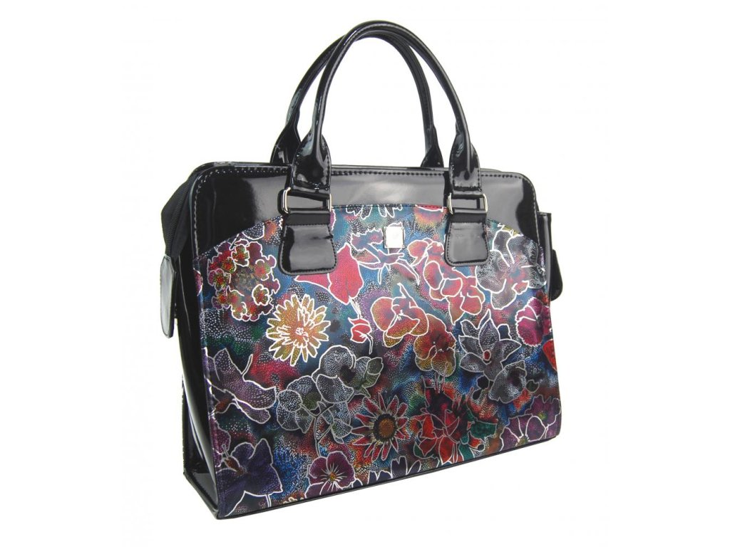 Luxusní černá dámská kabelka se stříbrnými kvítky pro notebook do 15.6 palce_SKL