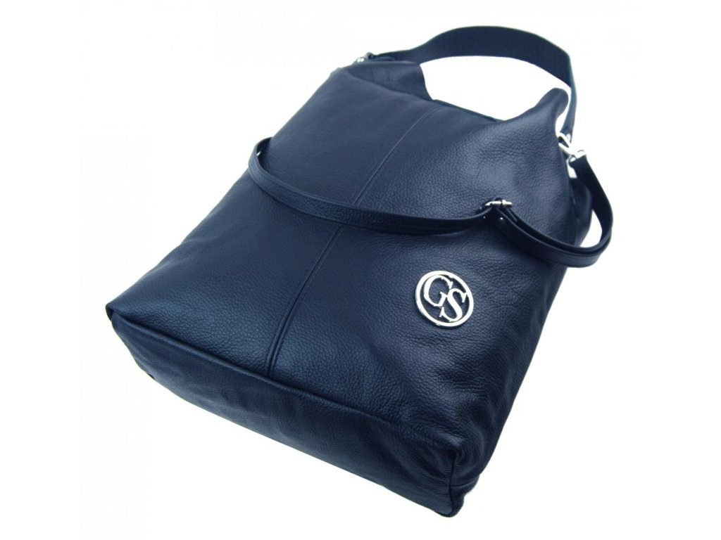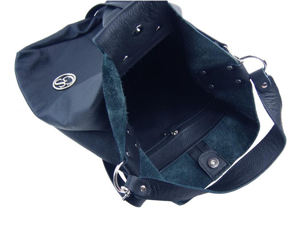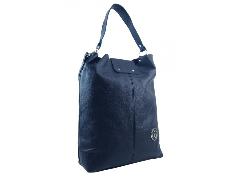 Obrovská tmavě modrá kožená dámská kabelka / pytel