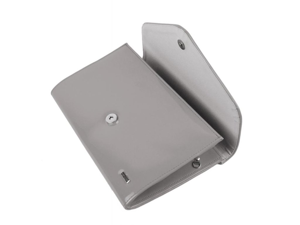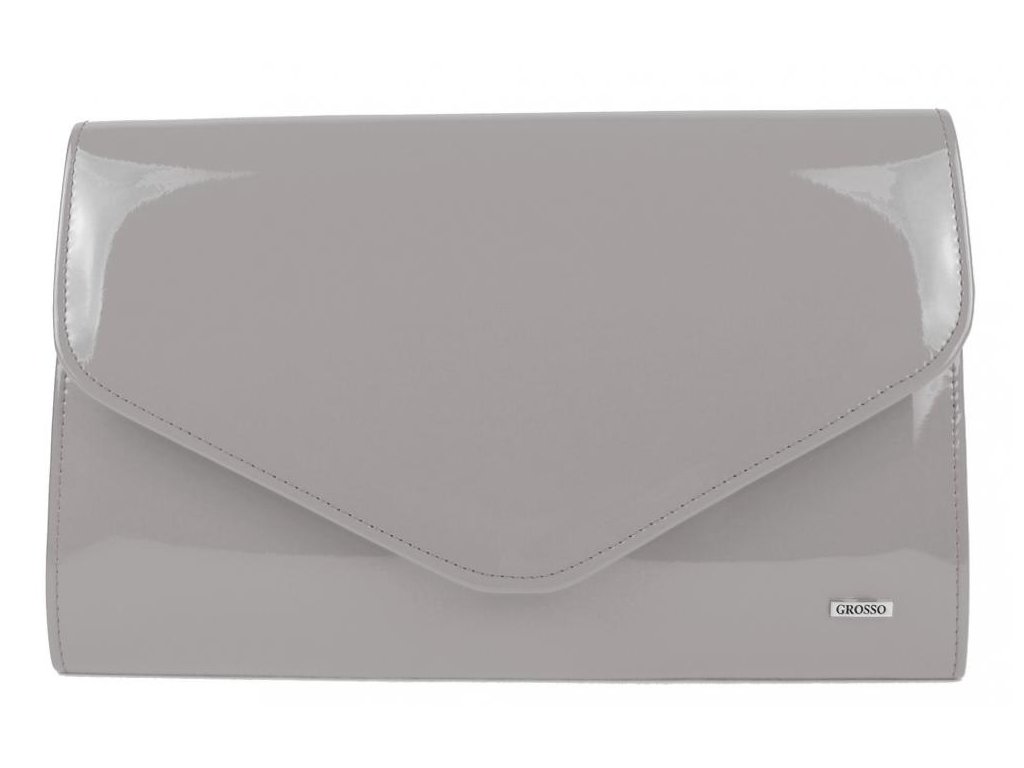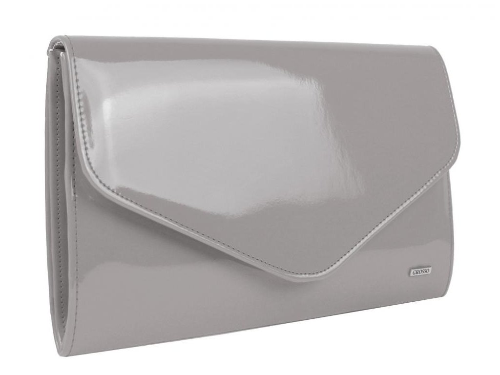 Světle šedá lakovaná společenská listová kabelka; šedá