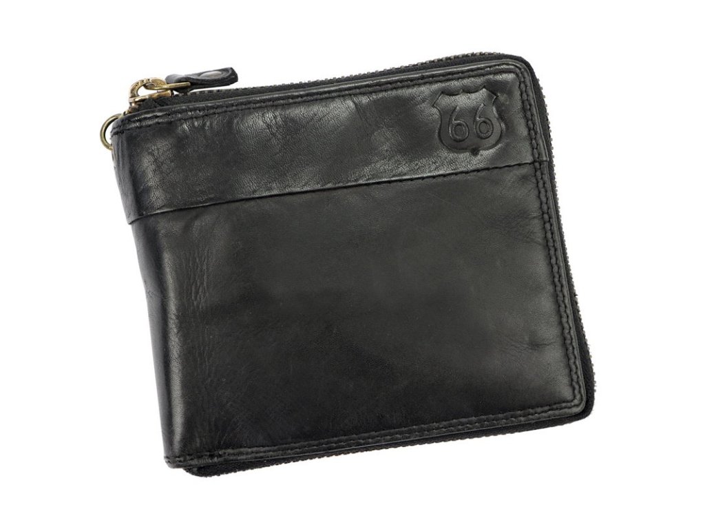 Kožená pánská peněženka značky Route 66 z pevné odolné kůže v černé barvě