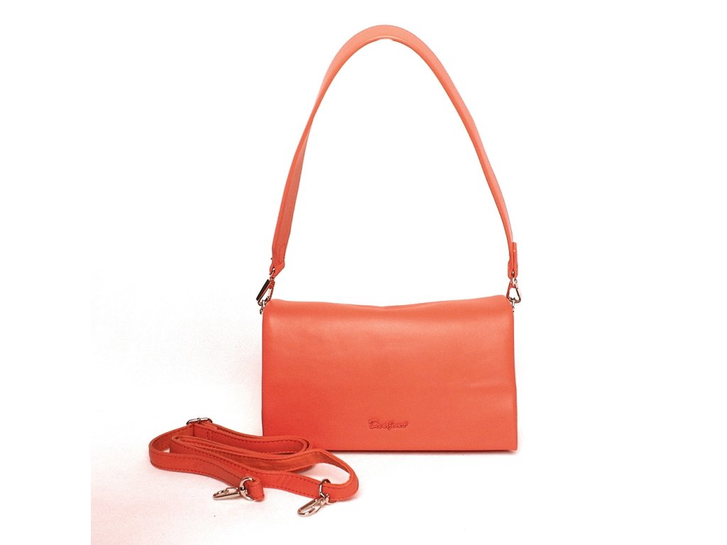 Originální čtyřoddílová oranžová kabelka z měkké syntetické kůže francouzské značky David Jones s odnímatelnými popruhy s karabinkami.