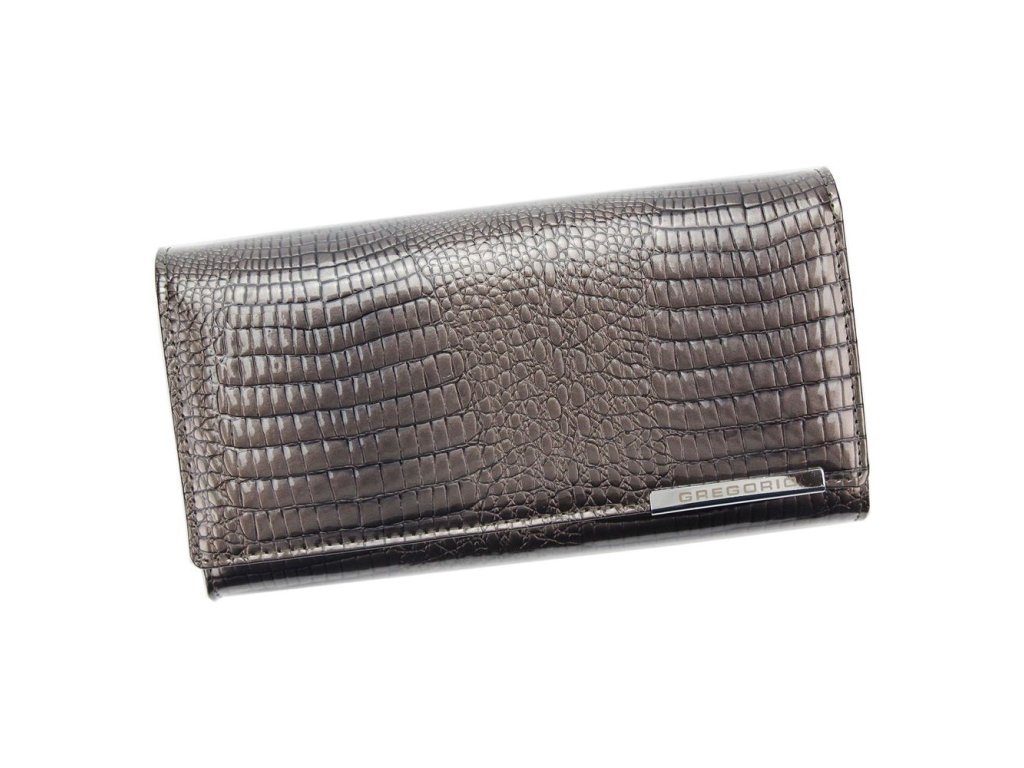 Dvousečkní kožená dámská šedá pevná lesklá peněženka značky Gregorio o rozměrech 19,4 x 10,4 cm