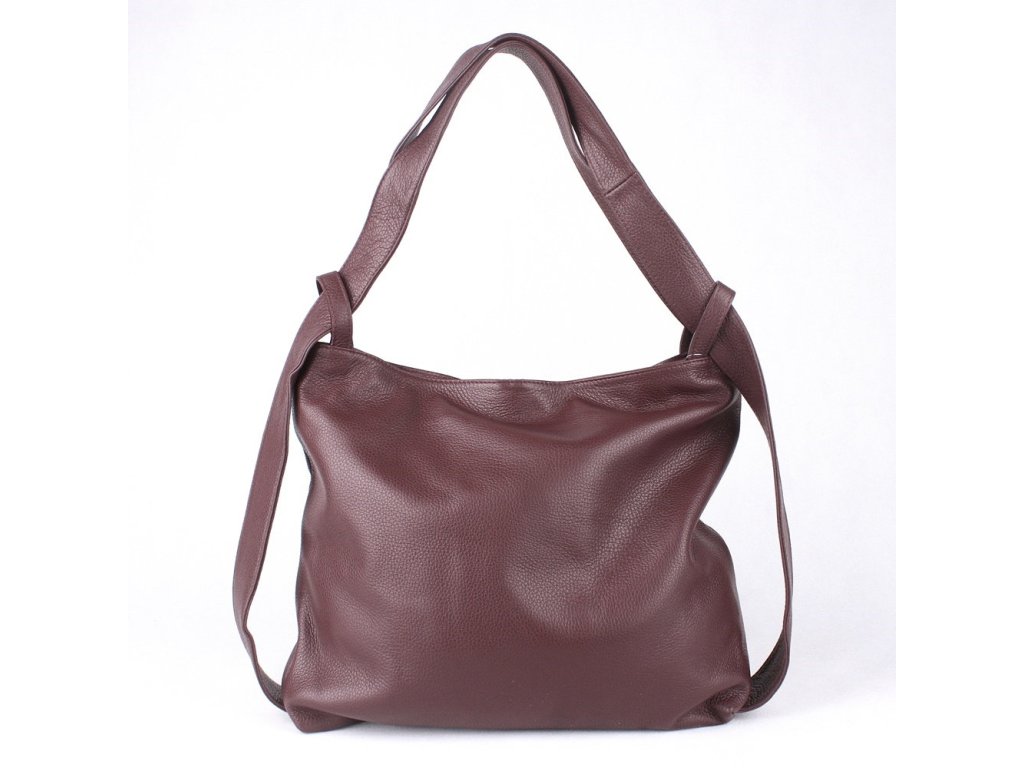 Dámská kabelka a batoh v 1 - velká kožená kabelka na rameno a batoh 12 vínová