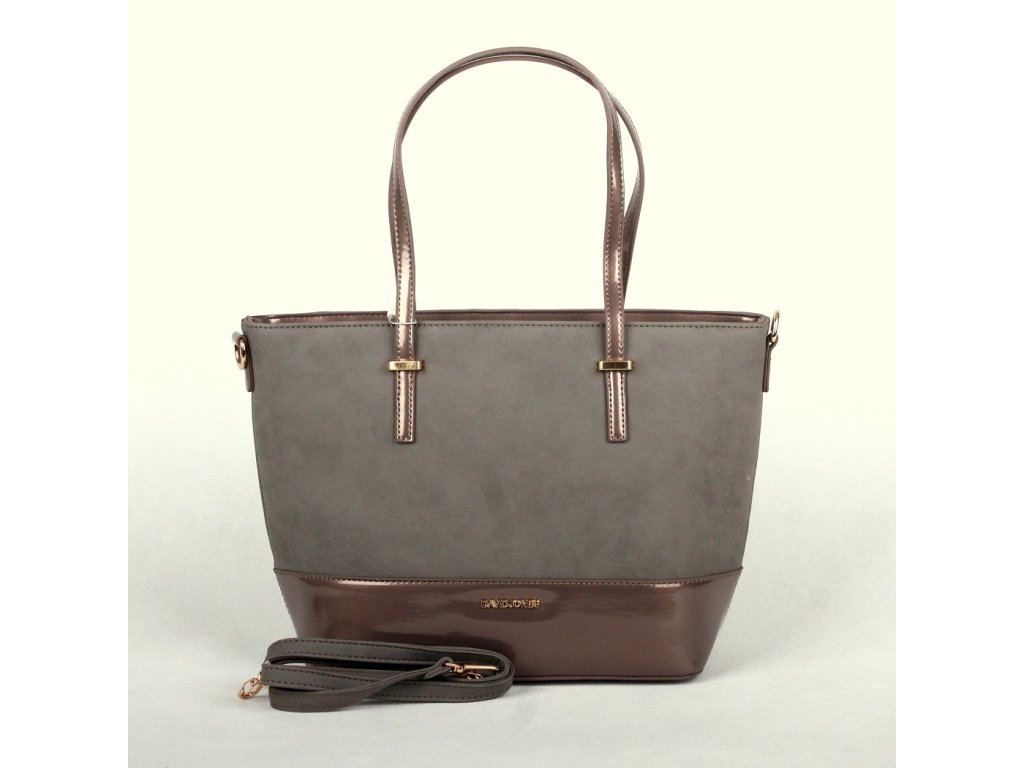 - kabelka je ve dvouodstínové kombinaci, horní část ekokůže připomínající semiš je matně či patinově šedá