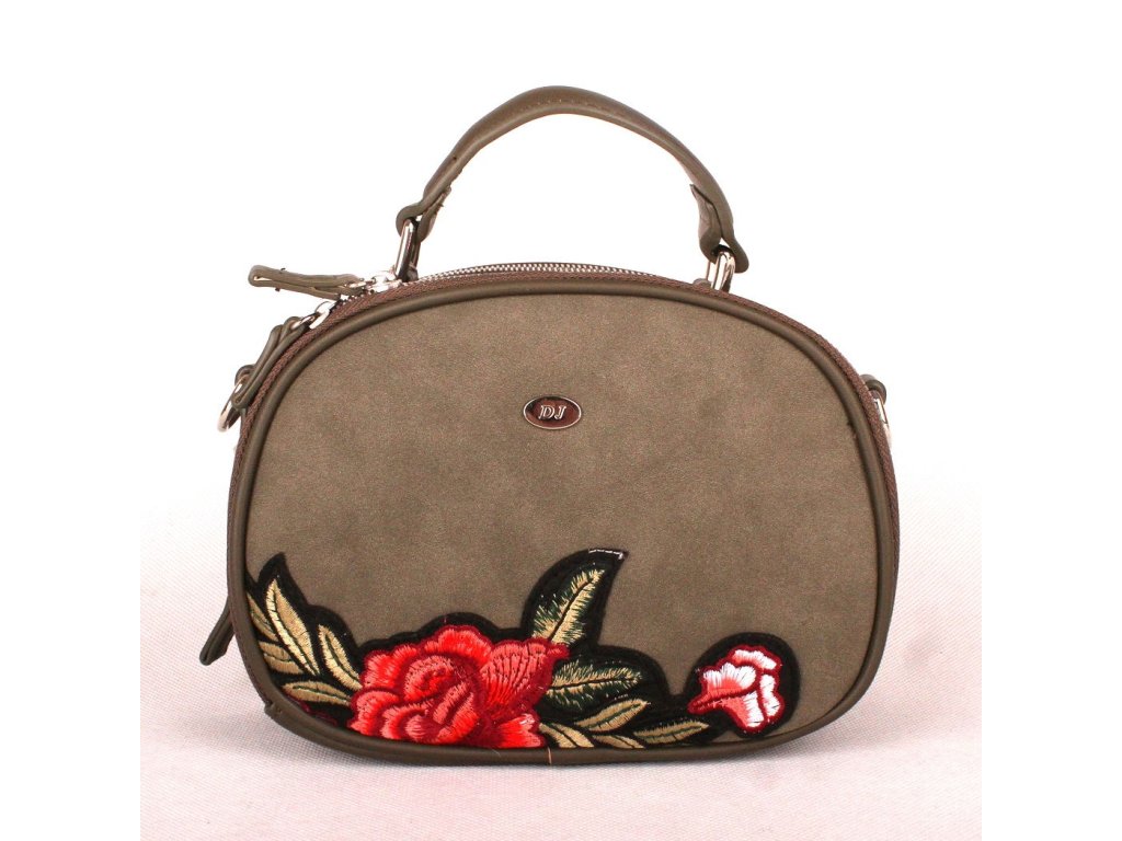 Dámská kabelka David Jones 5645-1 zelenohnědá (khaki) s výšivkou květin