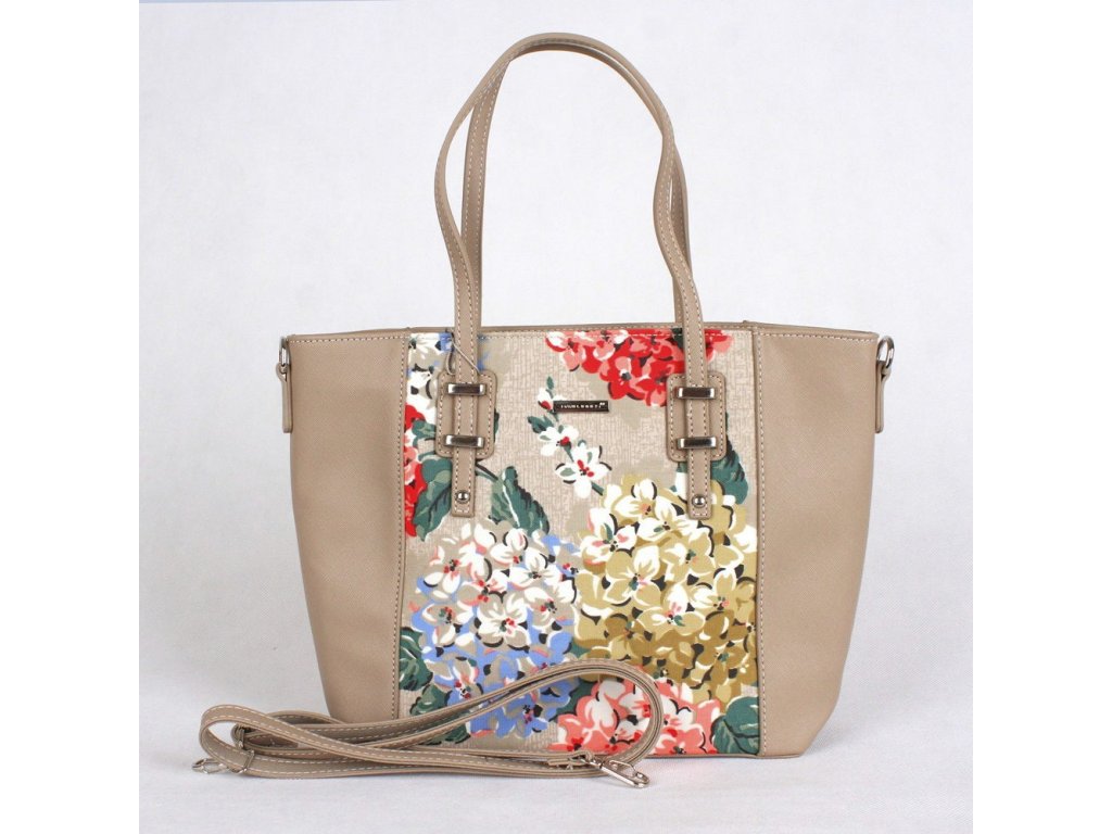 Moderní originální středně velká kabelka do ruky značky David Jones zaujme originálním květinovým motivem a doplní nejen letní outfid.