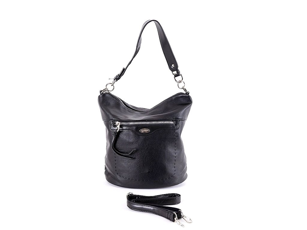 Kabelka střední velikosti značky David Jones 6603-2 v černé barvě jejíž součástí je dlouhý popruh o délce cca. 110 cm.