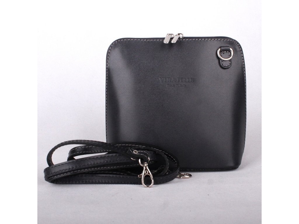 Kouzelná kožená malá crossbody kabelka o rozměrech 18 x 17 x 8,5 cm v černé barvě.
