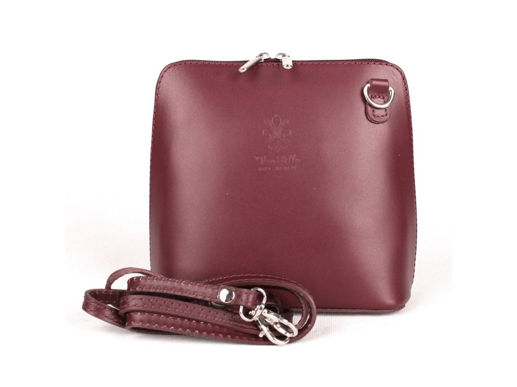 Kouzelná kožená malá crossbody kabelka o rozměrech 18 x 17 x 8,5 cm ve tmavěvínové až fialové barvě