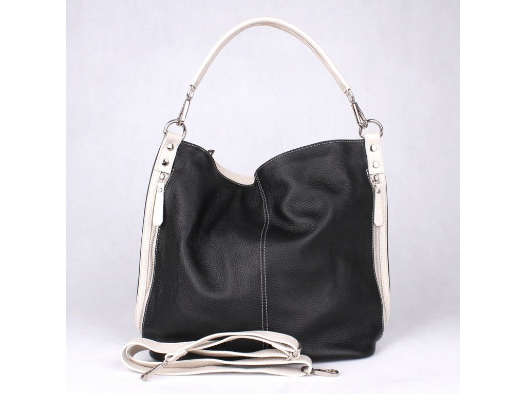 Dámská kožená kabelka na rameno i crossbody 7733 černo-bílá
