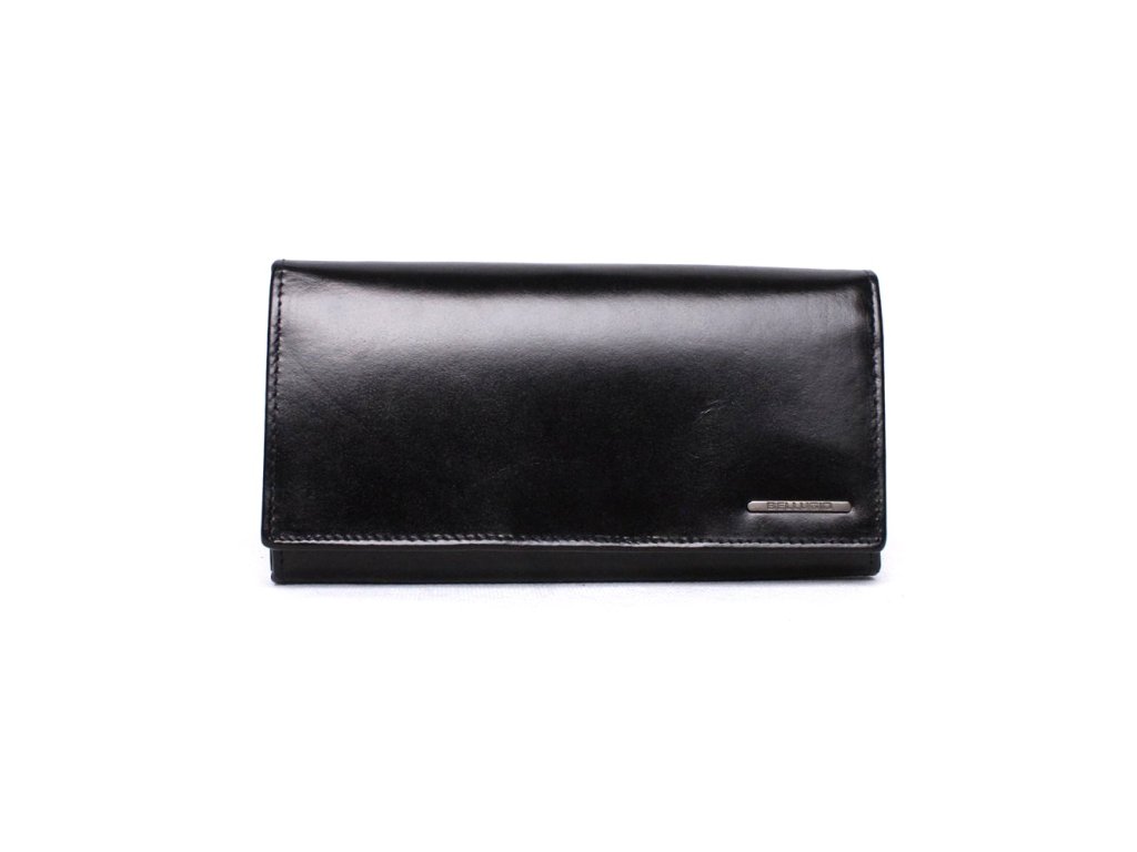 Pevná dámská kožená peněženka BELLUGIO o rozměrech 17,6 x 8,9 cm v černé barvě