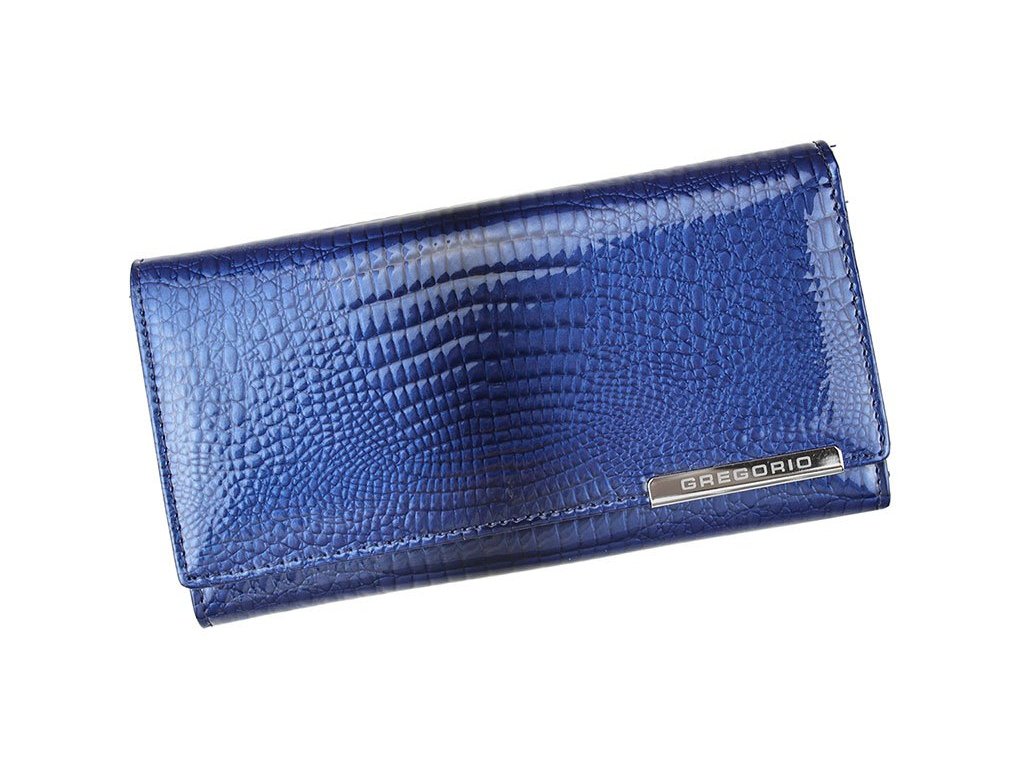 Modrá Gregorio peněženka s hladkým lesklým povrchem, který je strukturován do hadí kůže.