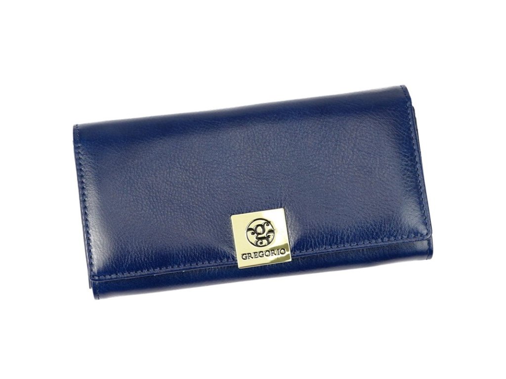 Kožená dámská pevná hladká peněženka značky Gregorio o rozměrech 19 x 9,8 cm v modré barvě