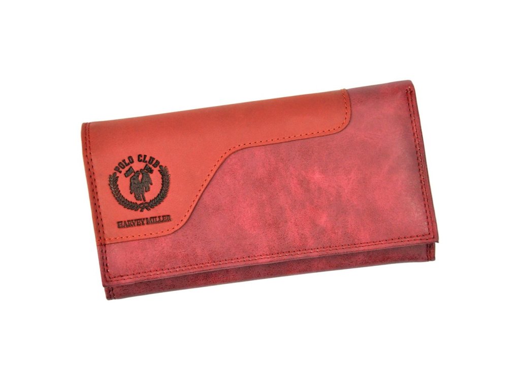 Kouzelná kožená červená peněženka značky Harvey Miller Polo Club je orientována podélně. Obsahuje 11 přihrádek na karty a doklady.