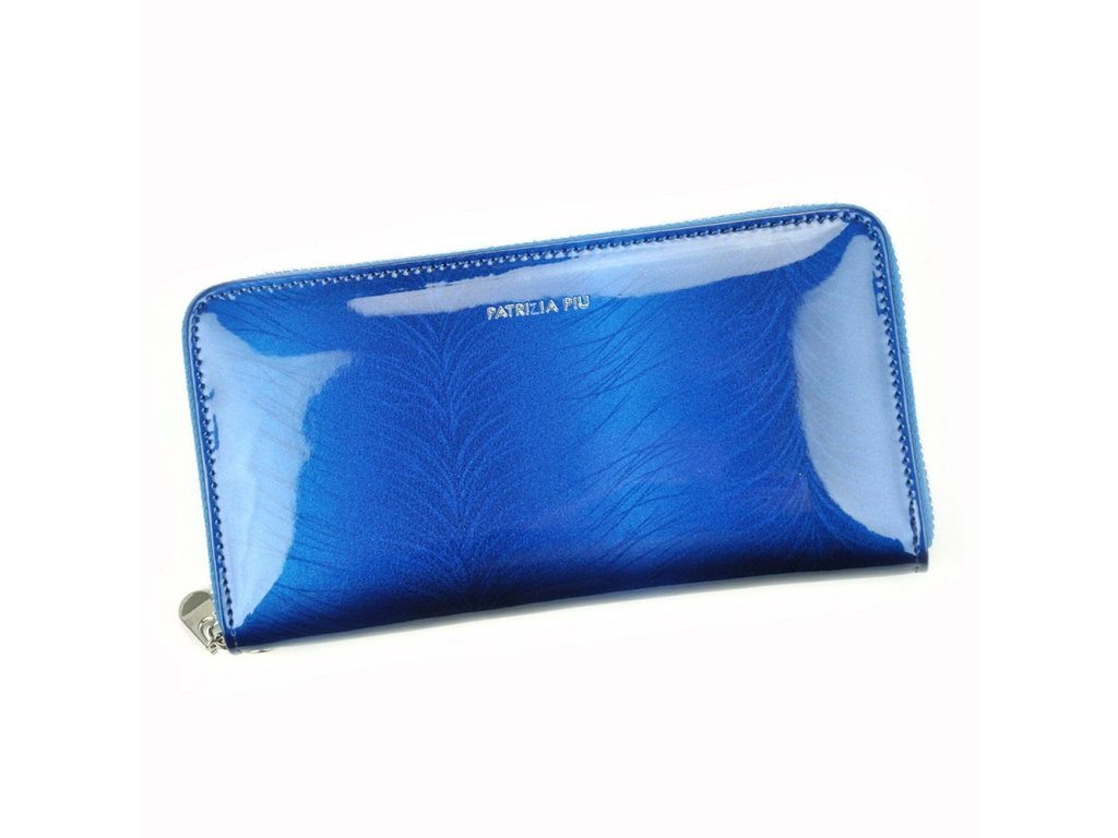 Dámská lesklá celozipová kožená peněženka Patrizia Piu FF-119 modrá