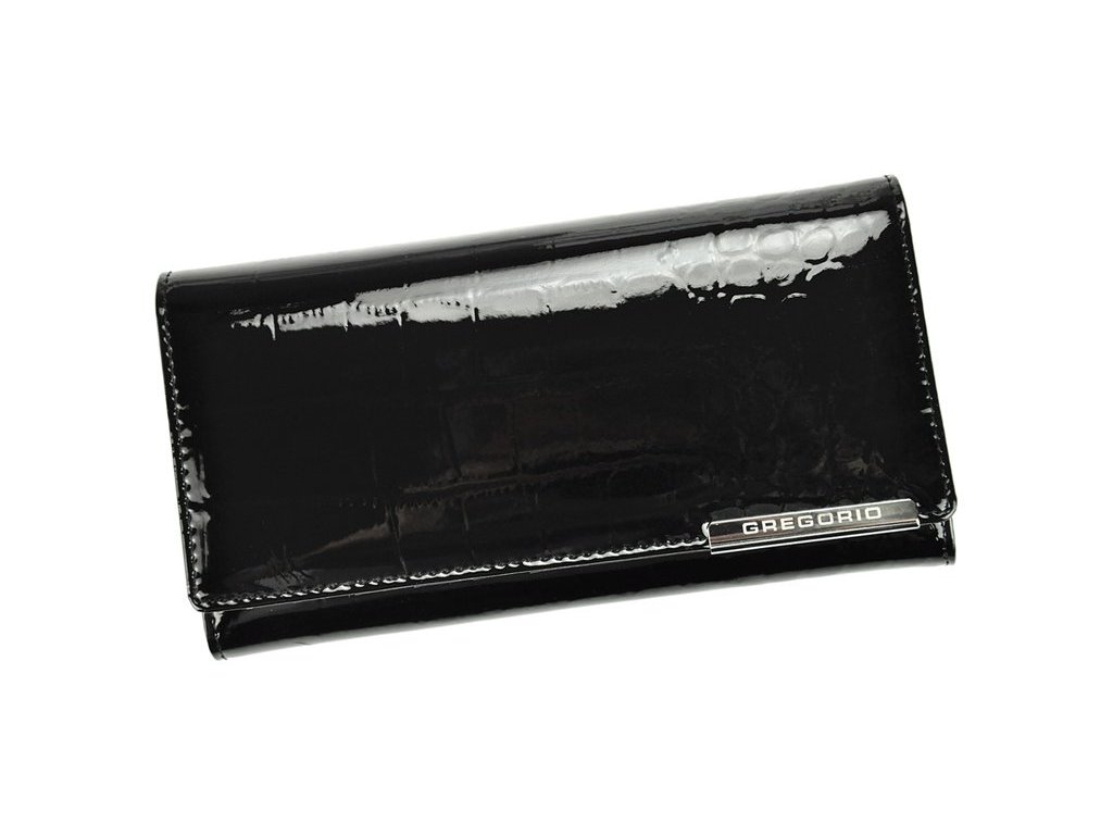 Kožená dámská pevná lesklá peněženka značky Gregorio o rozměrech 18,5 x 9,5 cm v černé barvě