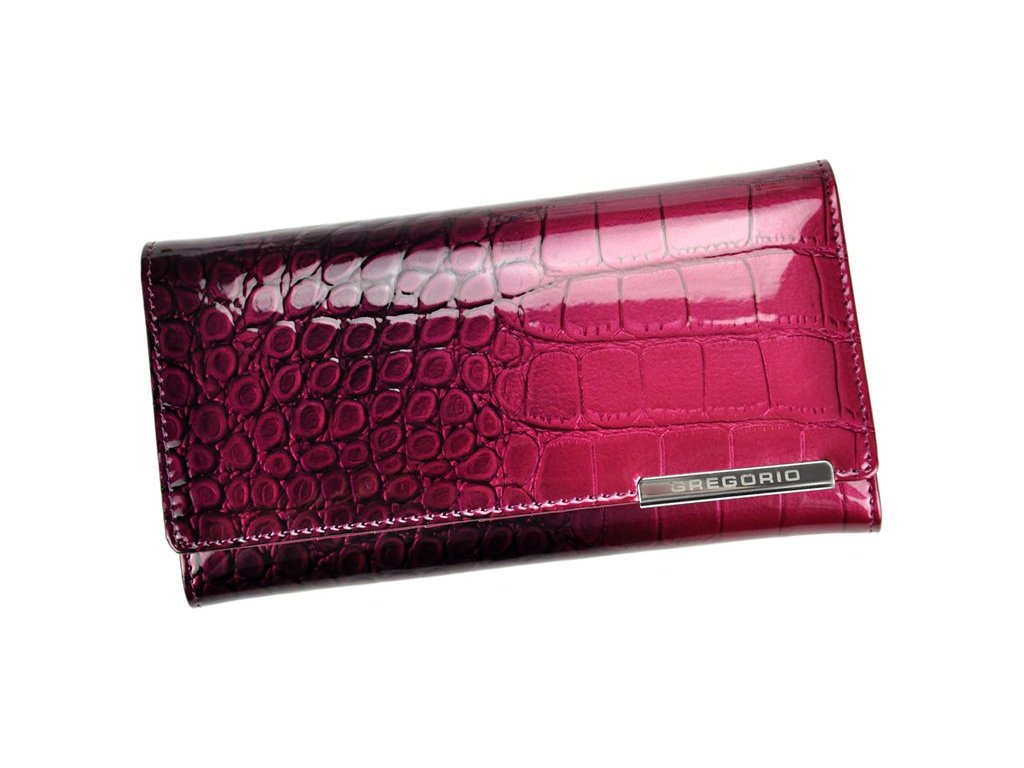 Kožená dámská pevná lesklá peněženka značky Gregorio o rozměrech 18,5 x 9,5 cm ve fialové barvě