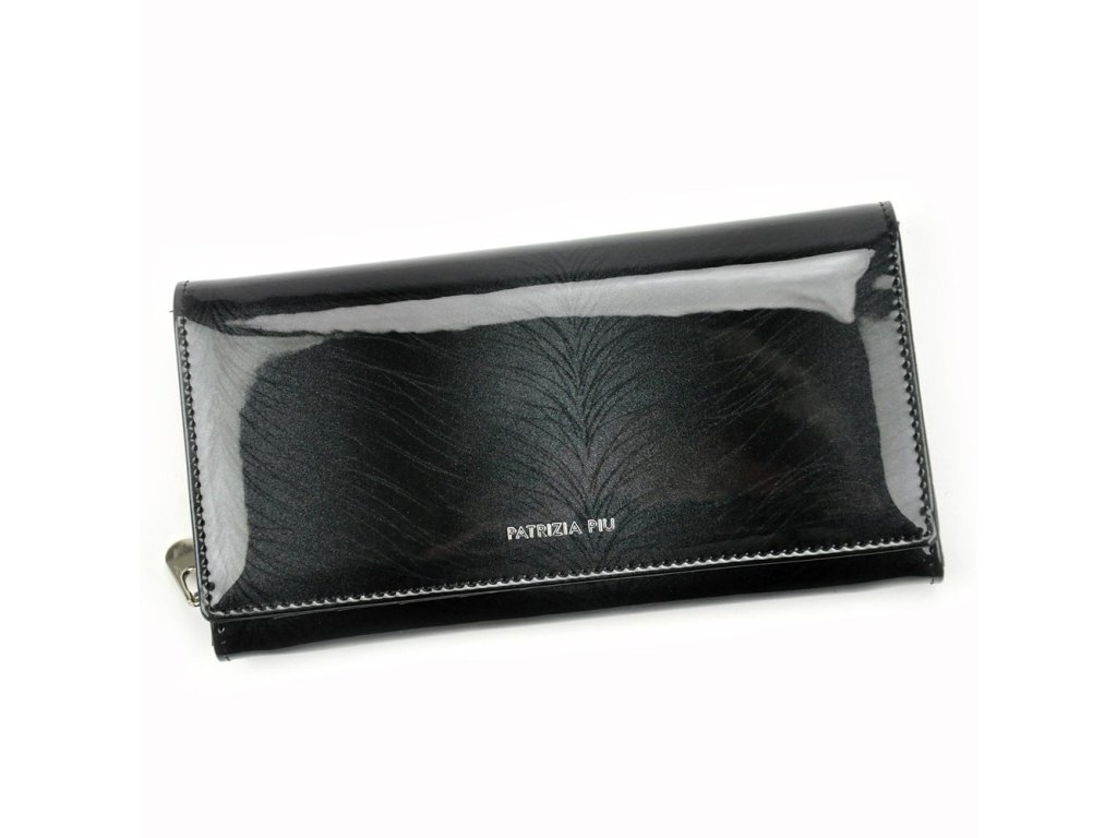 Dámská lesklá kožená peněženka Patrizia Piu FF-106 tmavěšedá/černá