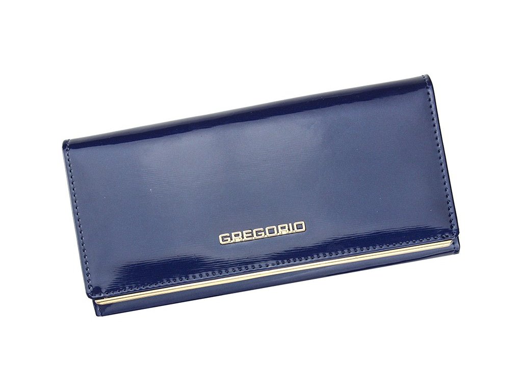 Kožená dámská pevná lesklá peněženka značky Gregorio o rozměrech 19,1 x 10 cm v modré barvě