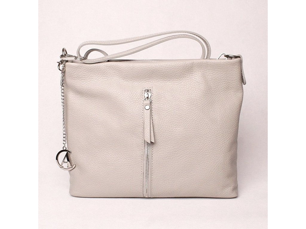 - luxusní kožená světlešedá značková italská dámská crossbody kabelka