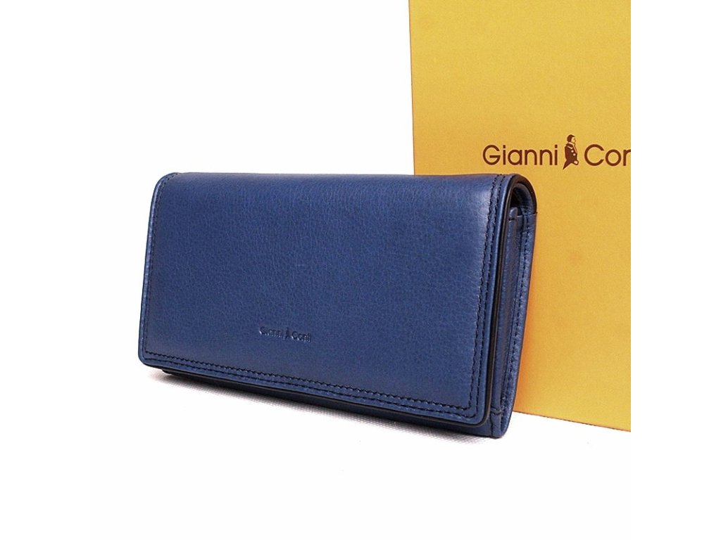 Luxusní kožená modrá značková italská dámská peněženka Gianni Conti s uzavíránim na klopu na druk