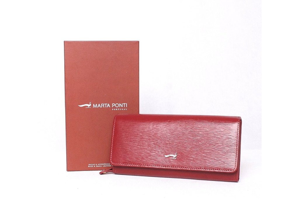 - luxusní kožená tmavěčervená značková portugalská dámská peněženka Marta Ponti se zapínám na druk (je možno uzavřít na dvou různých pozicích, dle zaplněnosti peněženky)