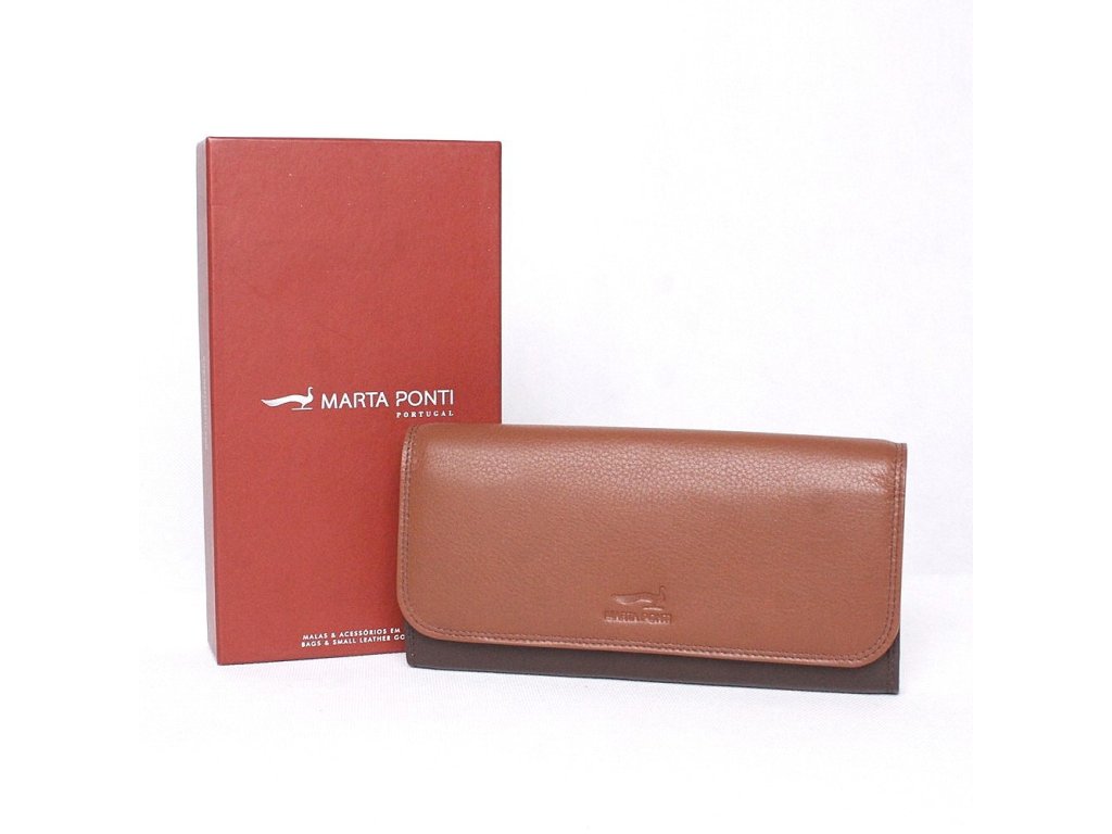 Luxusní kožená značková portugalská dámská peněženka Marta Ponti o rozměrech 19,3 x 9,2 x 3,5 cm v hnědo-tmavěhnědé kombinaci