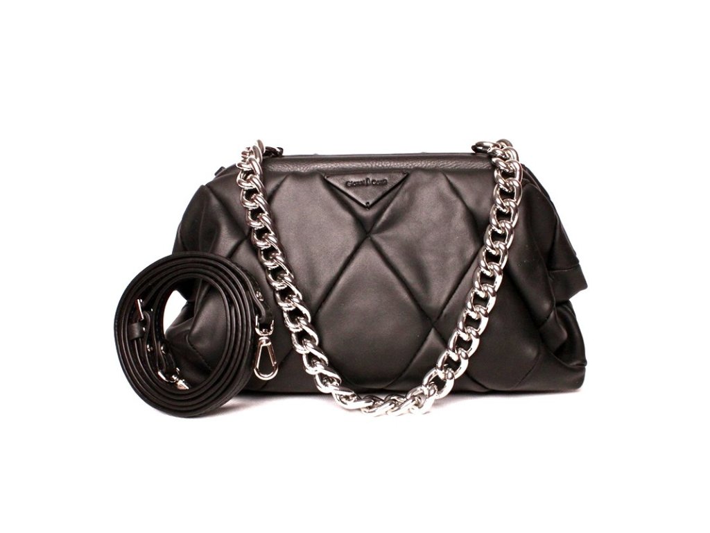 - kabelka Vás na první pohled zaujme ozdobným stříbrným řetězem, který slouží zároveň jako ucho a také prošívaným povrchem