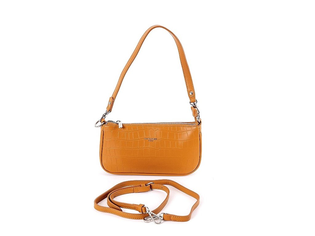 Úžasná malá kabelka CM6256A v karamelové barvě s povrchem stylizující krokodýlí kůži se dá nosit na rameni i jako crossbody.