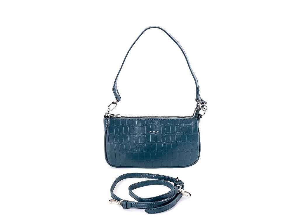 Úžasná malá kabelka CM6256A v paví modré barvě s povrchem stylizující krokodýlí kůži se dá nosit na rameni i jako crossbody.