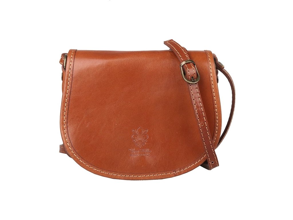 Kouzelná malá dámská kožená crossbody kabelka o rozměrech 18,5 x 14 x 6 cm ve světlehnědé barvě