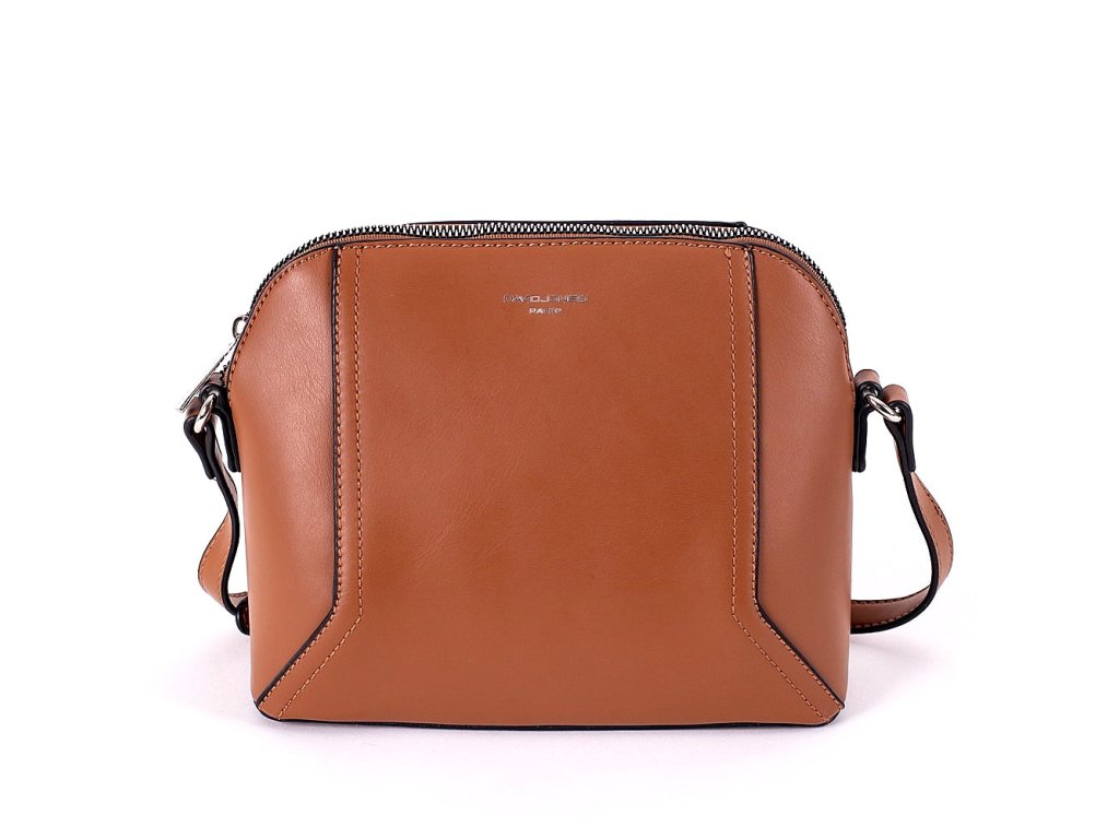 Moderní crossbody kabelka značky David Jones v podzimní hnědé barvě má dlouhý popruh nastavitelný až na délku 145 cm.