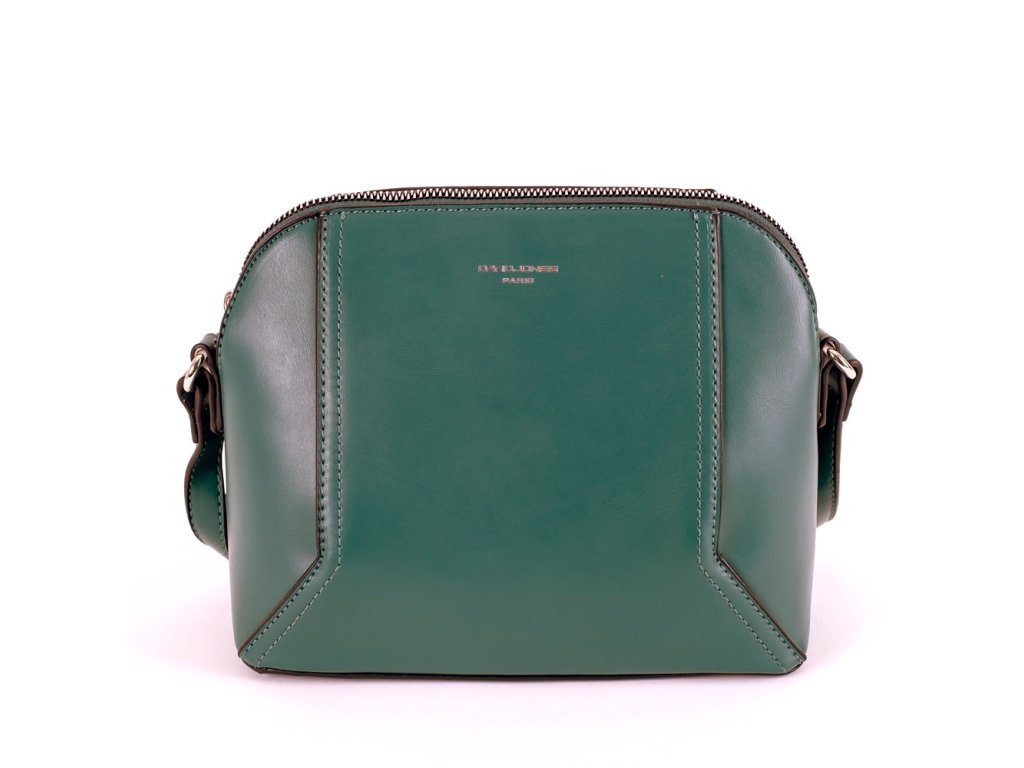 Moderní crossbody kabelka značky David Jones v zelené barvě má dlouhý popruh nastavitelný až na délku 145 cm.
