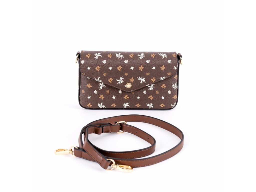 Malá kabelka crossbody na první pohled zaujme svým výrazným originálním vzorováním v krásné tmavěhnědé barvě.