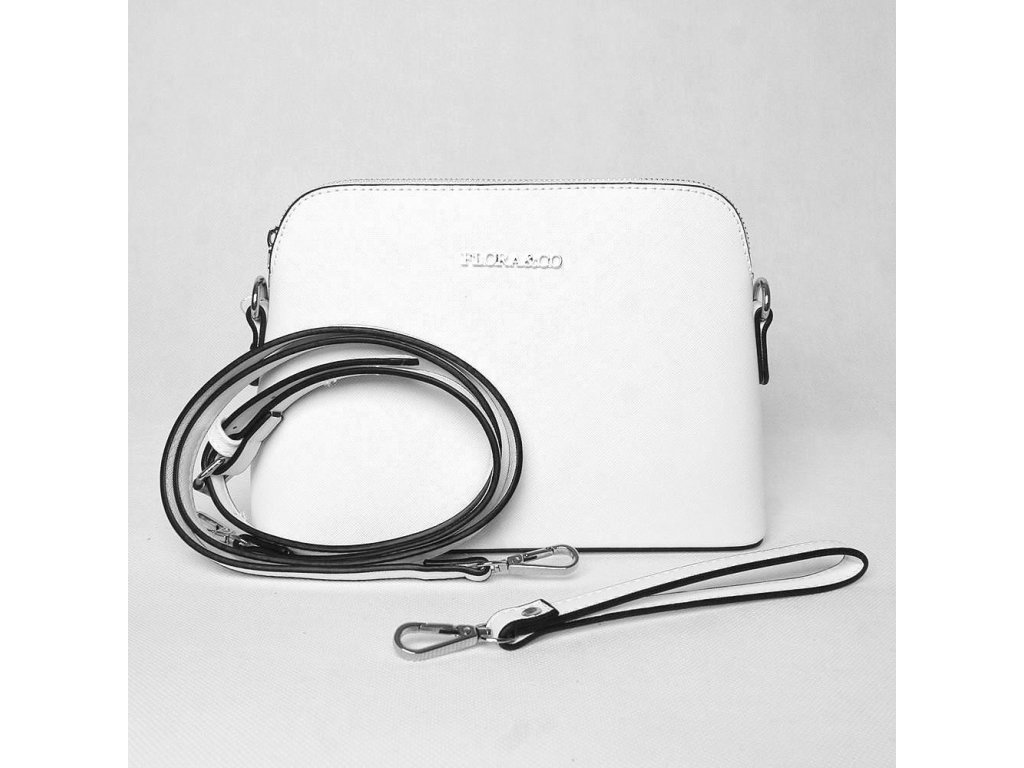 Bílá kabelka do ruky i na rameno značky FLORA&CO se stříbrnými doplňky je malého rozměru, ale velká v oblíbenosti.