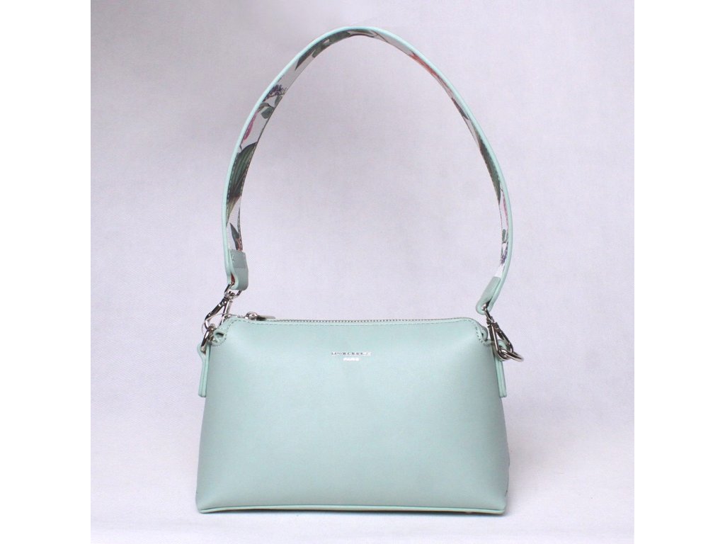 Malá crossbody v zelené barvě s květinovým motivem na vnitřní straně krátkého ucha je moderního designu.