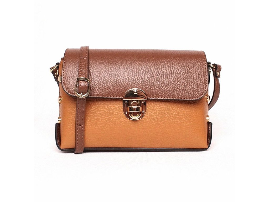 Kožená kabelka v krásné kombinaci barev - tmavěhnědé a světlehnědé od výrobce Vera Pelle.
