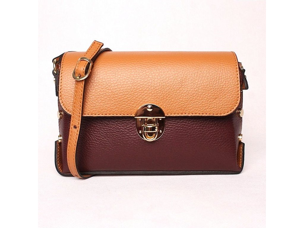 Kožená kabelka v krásné kombinaci barev - vínové a hnědé od výrobce Vera Pelle.
