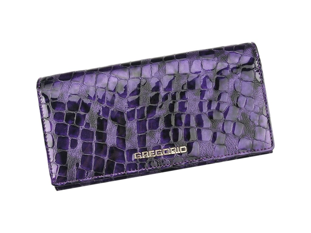 Kožená dámská pevná lesklá peněženka o rozměrech 19,3 x 10 cm v fialové barvě