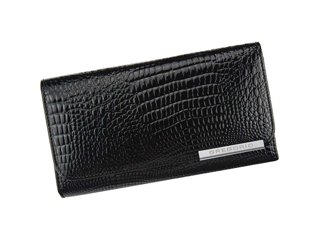 Kožená dámská pevná lesklá peněženka značky Gregorio o rozměrech 17,3 x 9.2 cm v černé barvě