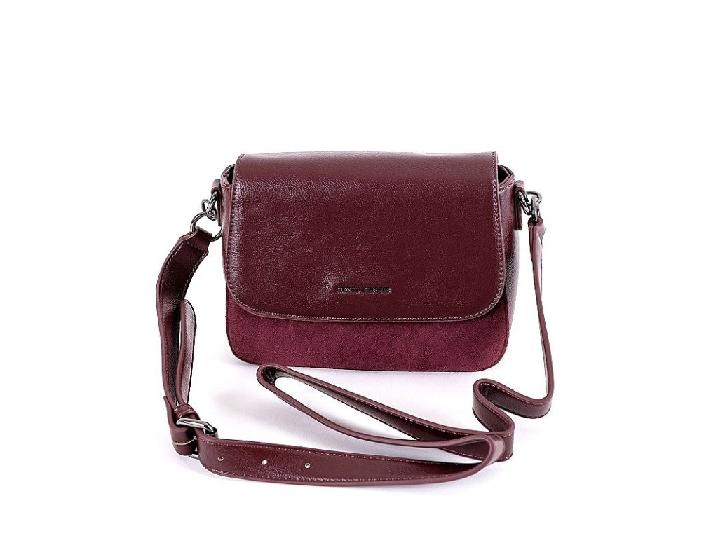 Crossbody kabelka s nastavitelným uchem až na délku 115 cm v tmavěčervené barvě se zajímavou kombinací materiálu - semiše a syntetické kůže.