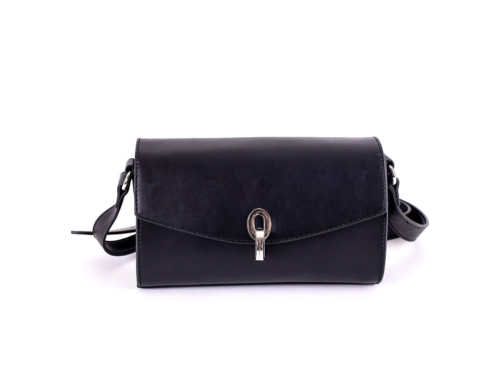 Černá crossbody kabelka s výrazným uzavíracím patentem je menších rozměrů, do níž se vejde vše základní ke každodenní potřebě žen a slečen.