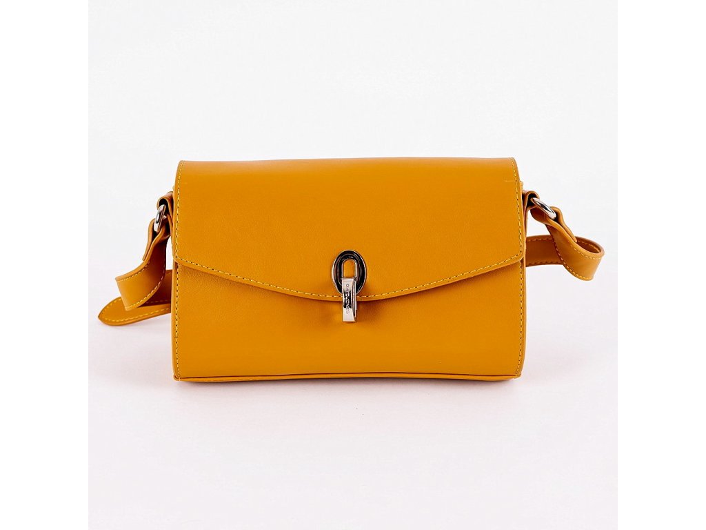 Žlutá crossbody kabelka s výrazným uzavíracím patentem je menších rozměrů, do níž se vejde vše základní ke každodenní potřebě žen a slečen.